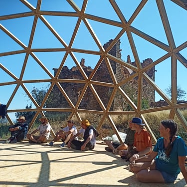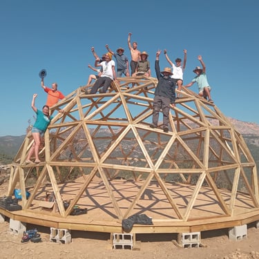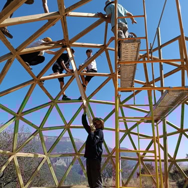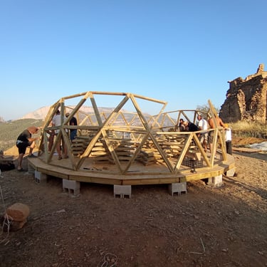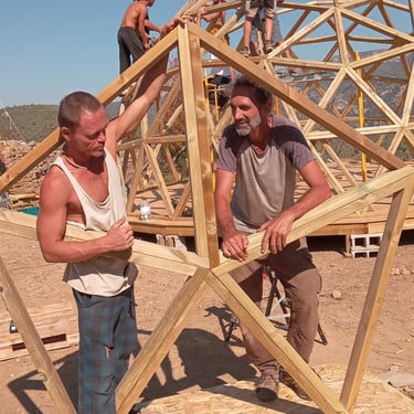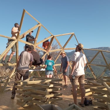 Taller de construcción de domo geodésico v4 de 8,4m de diámetro en Fet, Huesca.